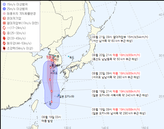 8월 20일부터 제주도는 강풍과 폭우의 영향을 받기 시작할 것입니다.